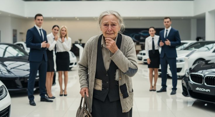 MATANDANG BABAE NA NAKA-USTADONG DAMIT NA PUMASOK SA LUXURY CAR SHOWROOM — PINAGTAWANAN NG MGA EMPLEYADO… HINDI NILA ALAM NA SIYA ANG TUNAY NA MAY-ARI NG KOMPANYA. SA HULI, LAHAT SILA NALUHOD AT NAGSUMAMPA NG PATAWAD.